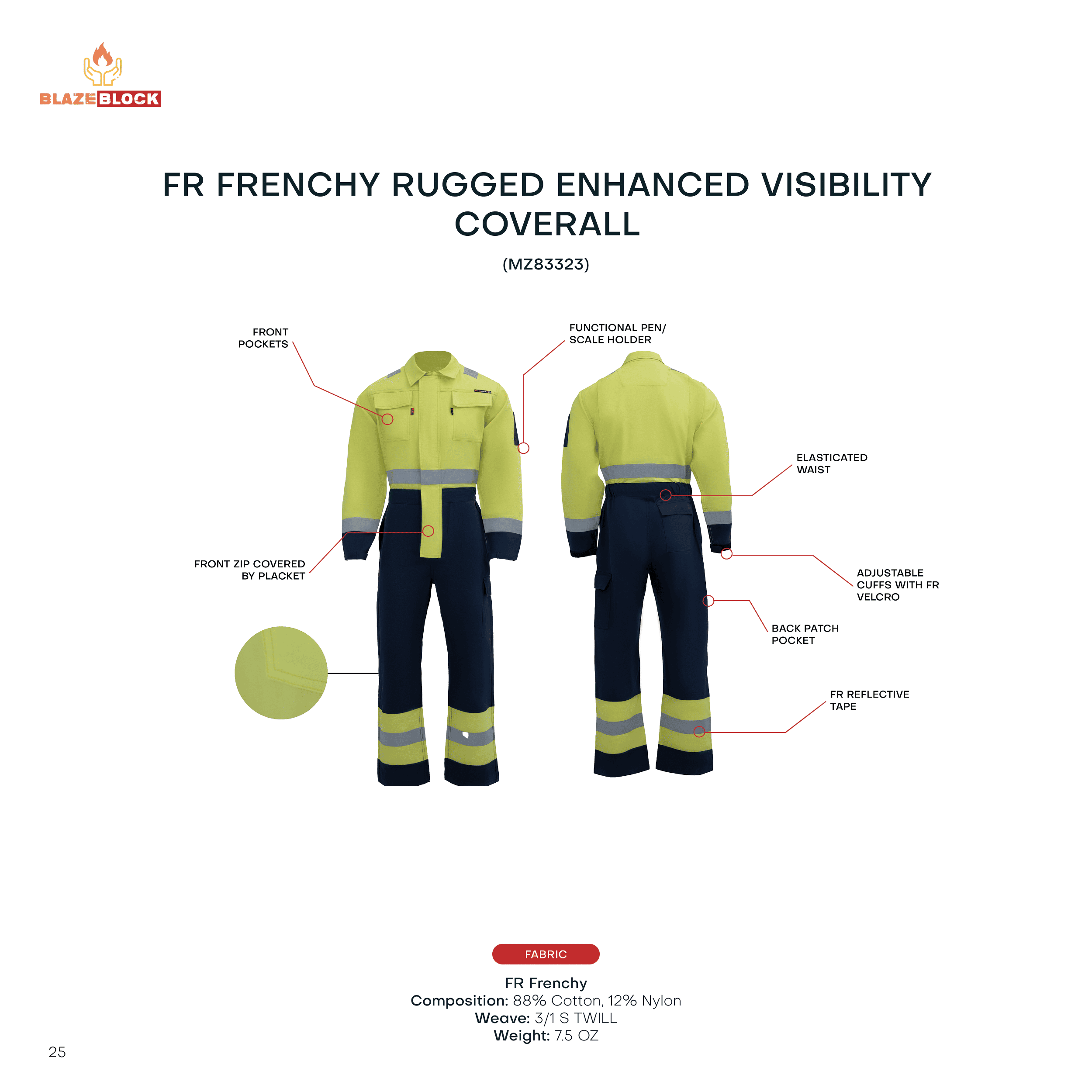 High Visibility – FR reflective tape for enhanced safety in low-light conditions.