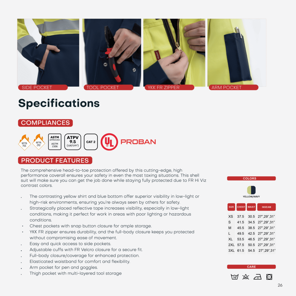 Certified FR Protection – NFPA & ASTM approved, CAT 2 rating with ATPV 9.5 cal/cm².